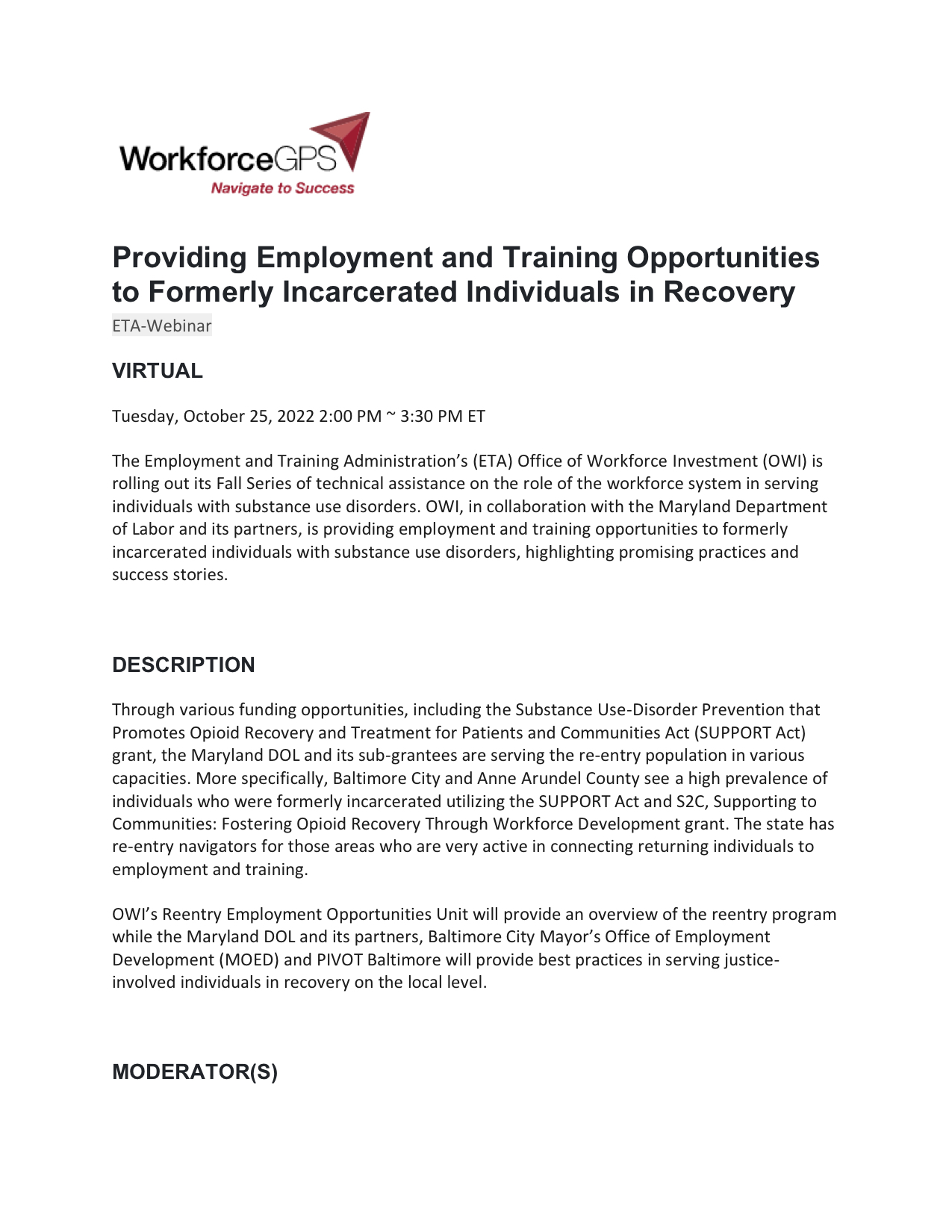 Providing Employment and Training Opportunities to Formerly Incarcerated Individuals in Recovery